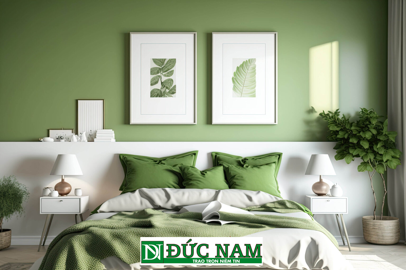 Không gian phòng ngủ tràn ngập màu xanh thiên nhiên phù hợp cho gia chủ mệnh hỏa