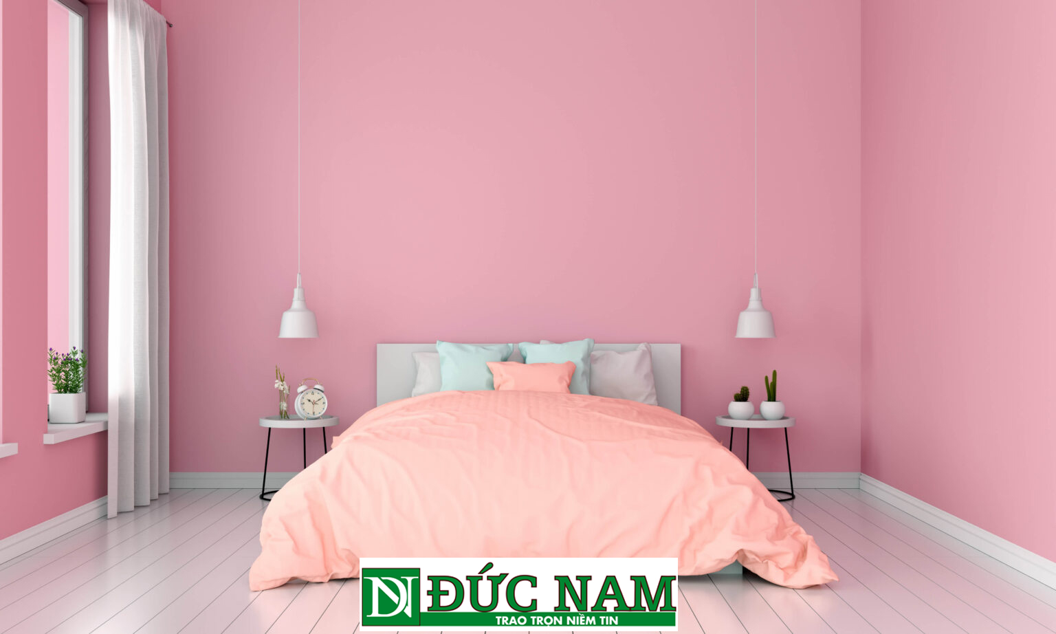 Không gian phòng ngủ tràn ngập màu hồng phù hợp cho gia chủ mệnh hỏa