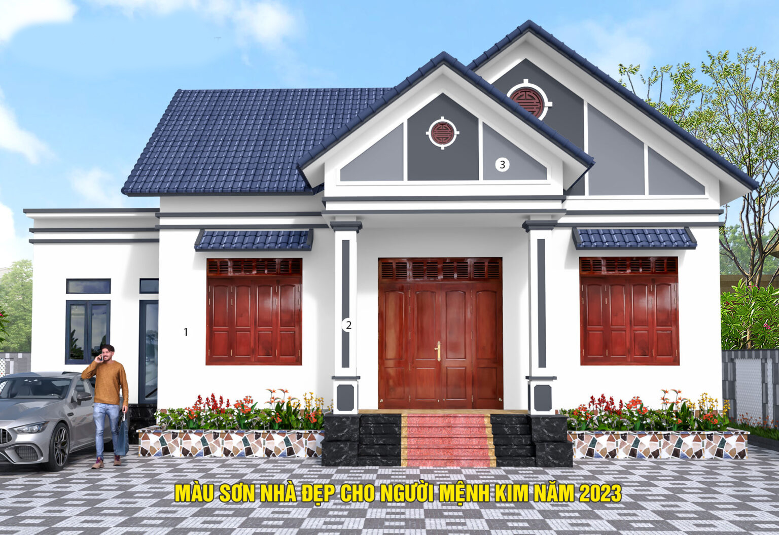 Phương án màu sơn Trắng kết hợp màu ghi cho người mệnh kim 2023